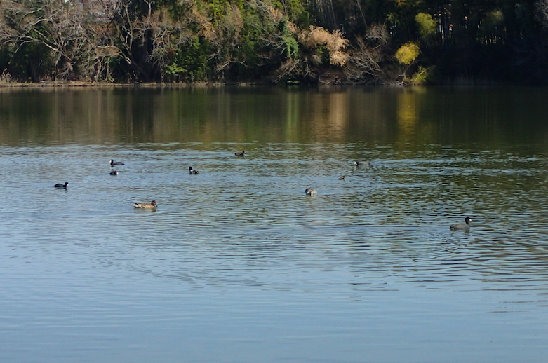 散歩のために池を一周する方を多く見かけました。オオバンやオナガガモなどの水鳥が多く、楽しい池です。