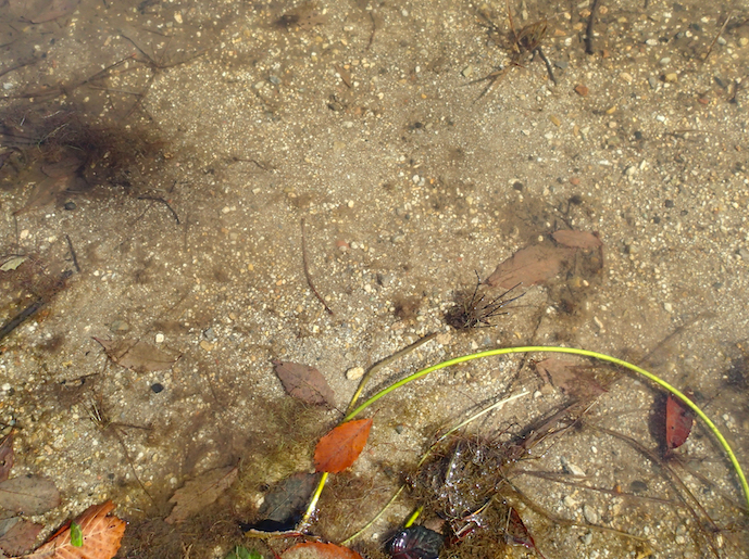 (訪問1回目)ウズムシを見つけた水環境:午前11:30, タヌキモ類周辺の水(水温12.8℃, pH 6.85)午前11時半過ぎに訪問しました。 魅力的な砂地が広がる静かな池です。 塚ノ杁池のウズムシにご挨拶するために、オオバナイトタヌキモ周辺の水を採取したところ、ツキノワクサリヒメウズムシ(Stenostomum bicaudatum)がおりました。本種はワムシの仲間を専門に食べます(動画)。水田では稀ですが、池では良く見つかるウズムシです。